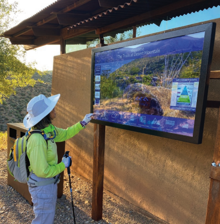 The digital guide—an innovative Desert Mountain exclusive—enables hikers to swiftly custom design their hike and download their personal route map onto their digital devices to carry with them. Local weather, hiking tips, rules of the trail system, and safety tips can all be viewed on the digital guide —everything needed to have a spectacular hiking experience. Waterproof outdoor screen Latest touch technology for fast and accurate response Auto time controls to turn off monitor at night.